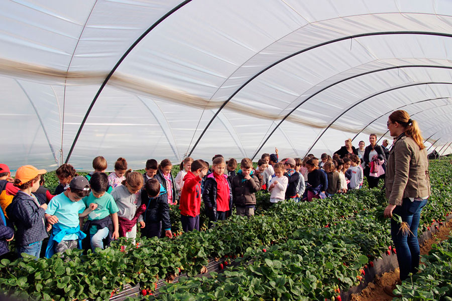 Medio centenar de alumnos de Educación Infantil de 5 años visita los cultivos de fresa y la cooperativa