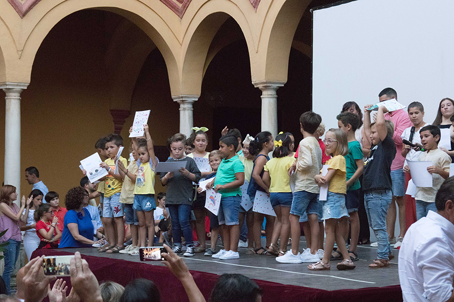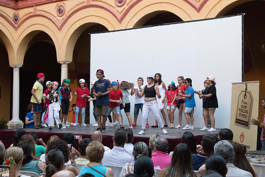 Los más pequeños, equipos Fresa y Frambuesa, alumnos del campamento de Inteligencia Emocional, sorprendieron a los asistentes al acto, que abarrotaron el patio del Archivo Municipal, con el baile de dos canciones con un mensaje especial relacionado con la igualdad y el respeto.