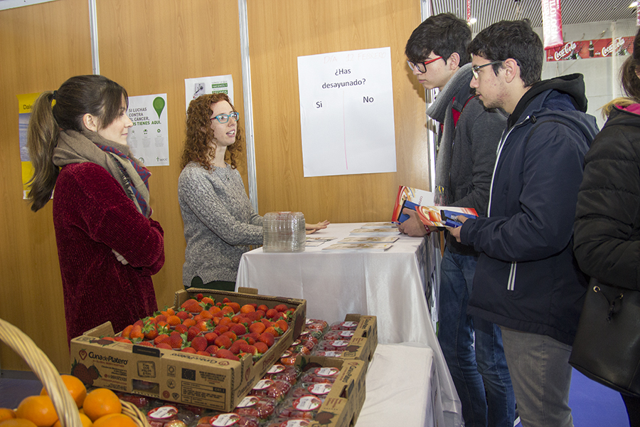 Está previsto que más de 2.500 alumnos de segundo de bachillerato participen en estas jornadas de Puertas Abiertas que se celebran desde el 12 al 15 de febrero. La AECC realiza desde hace diez años una labor destacada de prevención en los jóvenes, “una edad en la que se saltan las comidas, no siguen una dieta equilibrada, etc.”. Además de la alimentación, el stand de la AECC pone el acento en otras campañas de prevención, como evitar el tabaco, el alcohol, etc.