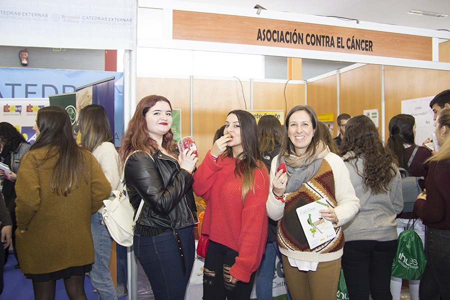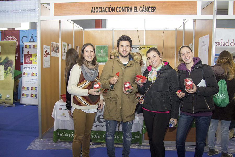 En el mismo sentido, la técnica de Prevención y Promoción de la Salud de la AECC en Huelva, Pilar Maestre, ha apuntado que este stand saludable -donde están disponibles las fresas de Cuna de Platero– recomienda a los jóvenes que se acercan a la Onubense para conocer su oferta formativa desde diferentes institutos de la provincia de Huelva que “deben tomar frutas y verduras a diario para eliminar sustancias tóxicas del organismo”. La adolescencia es, según apunta la técnica, “la época en la que suelen abandonar los buenos hábitos, consumen más alimentos procesados que influyen en el desarrollo de enfermedades como la diabetes, obesidad, etc.”. Por ello, ha apuntado, “es esencial que concienciemos sobre la importancia de consumir a diario frutas y verduras”.