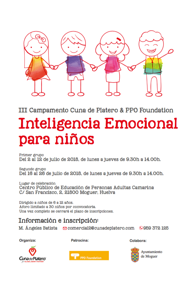 Cuna de Platero pone en marcha su III campamento de verano de Inteligencia Emocional, una iniciativa de Responsabilidad Social Corporativa (RSC) que ha cosechado un gran respaldo en sus ediciones anteriores. Este programa se desarrolla con niños de Moguer de entre 6 y 12 años, repartidos en turnos de dos semanas, durante todo el mes de julio.