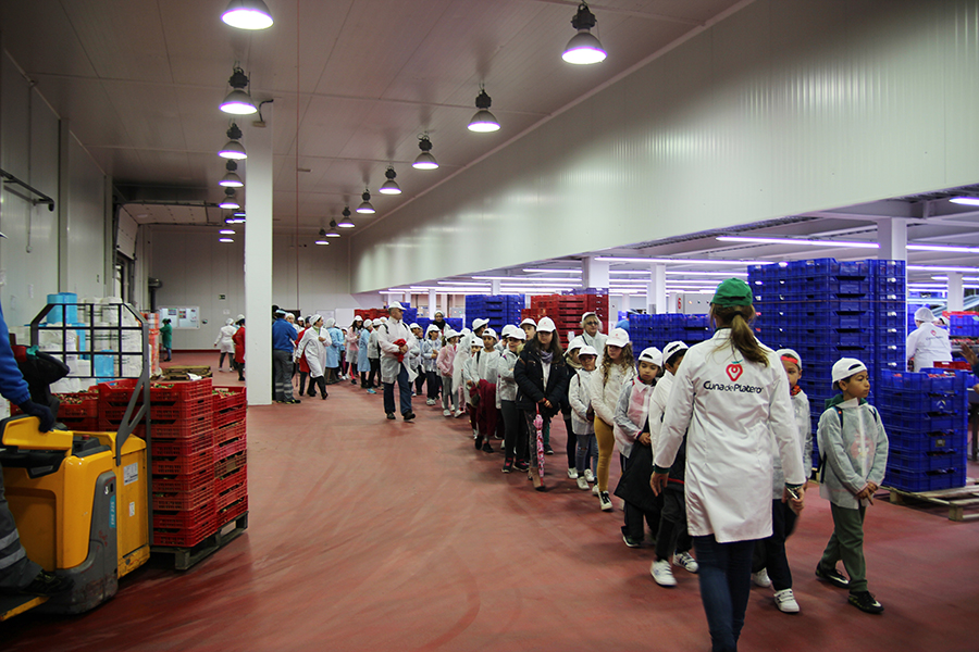 Cuna de Platero ha recibido la visita de 56 alumnos del colegio Virgen de Montemayor de Moguer. Esta visita se enmarca dentro de las acciones de la cooperativa para dar a conocer a las nuevas generaciones la actividad que realiza, cómo se producen los frutos rojos y cuál es su cuidado, tanto del fruto como del entorno, hasta que llega al supermercado.
