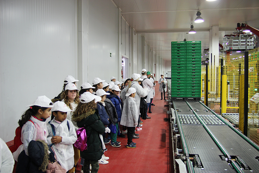 Los alumnos del Virgen de Montemayor, de 8 años de edad, han visitado el almacén, realizando el recorrido de la fruta por sus diferentes áreas, desde los muelles donde se descarga la fruta, pasando por las cámaras de frío, las líneas de manipulación, envasado, paletizado y muelles de expedición.