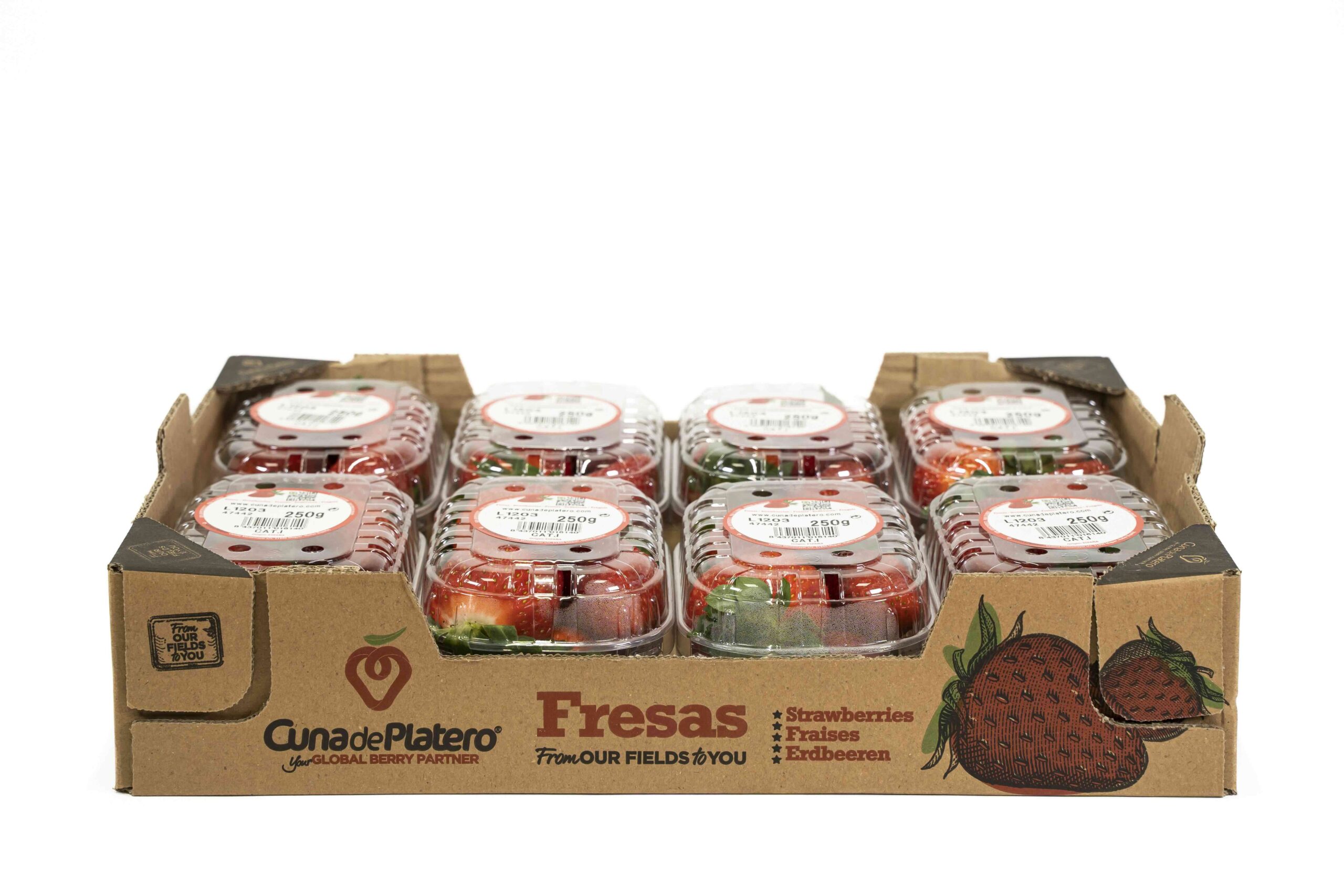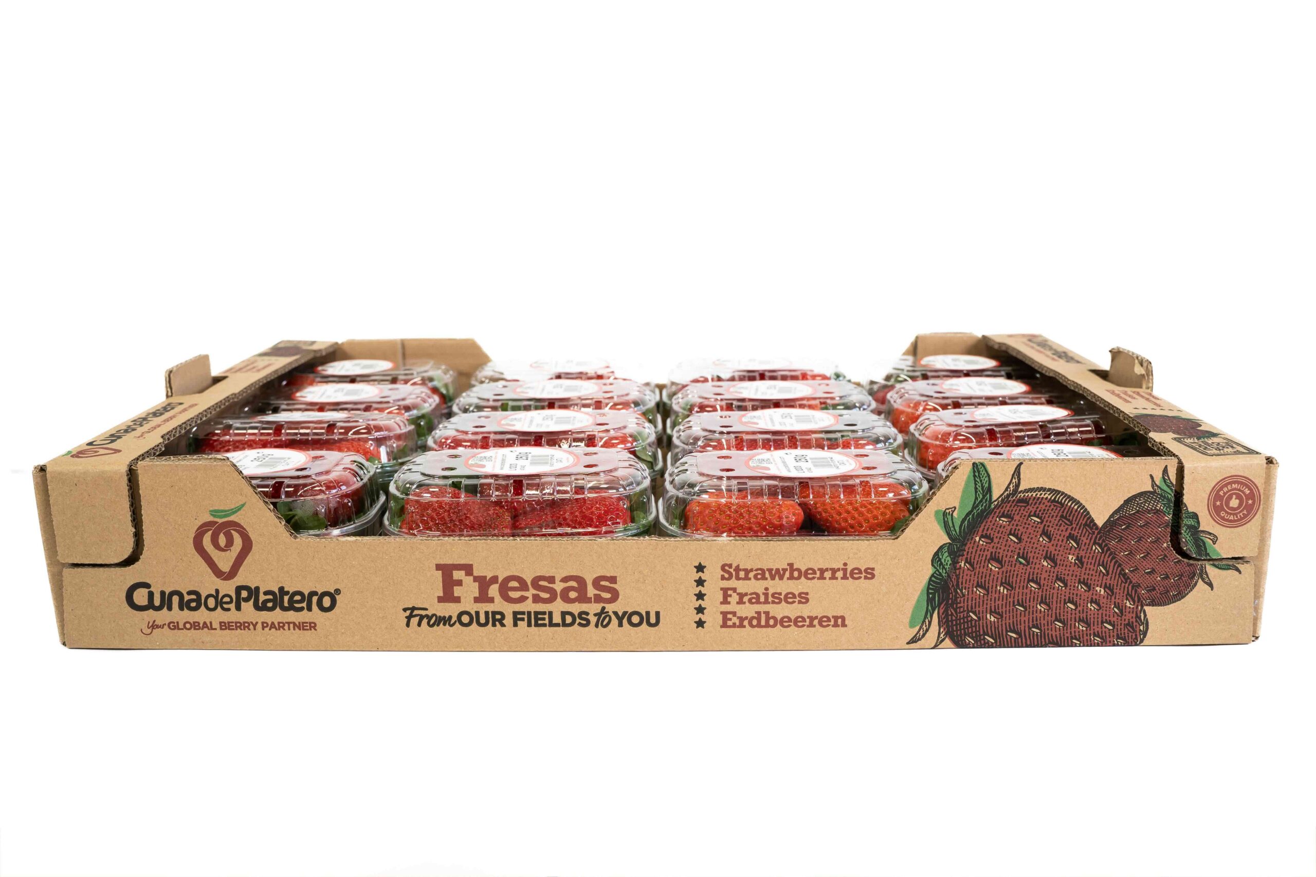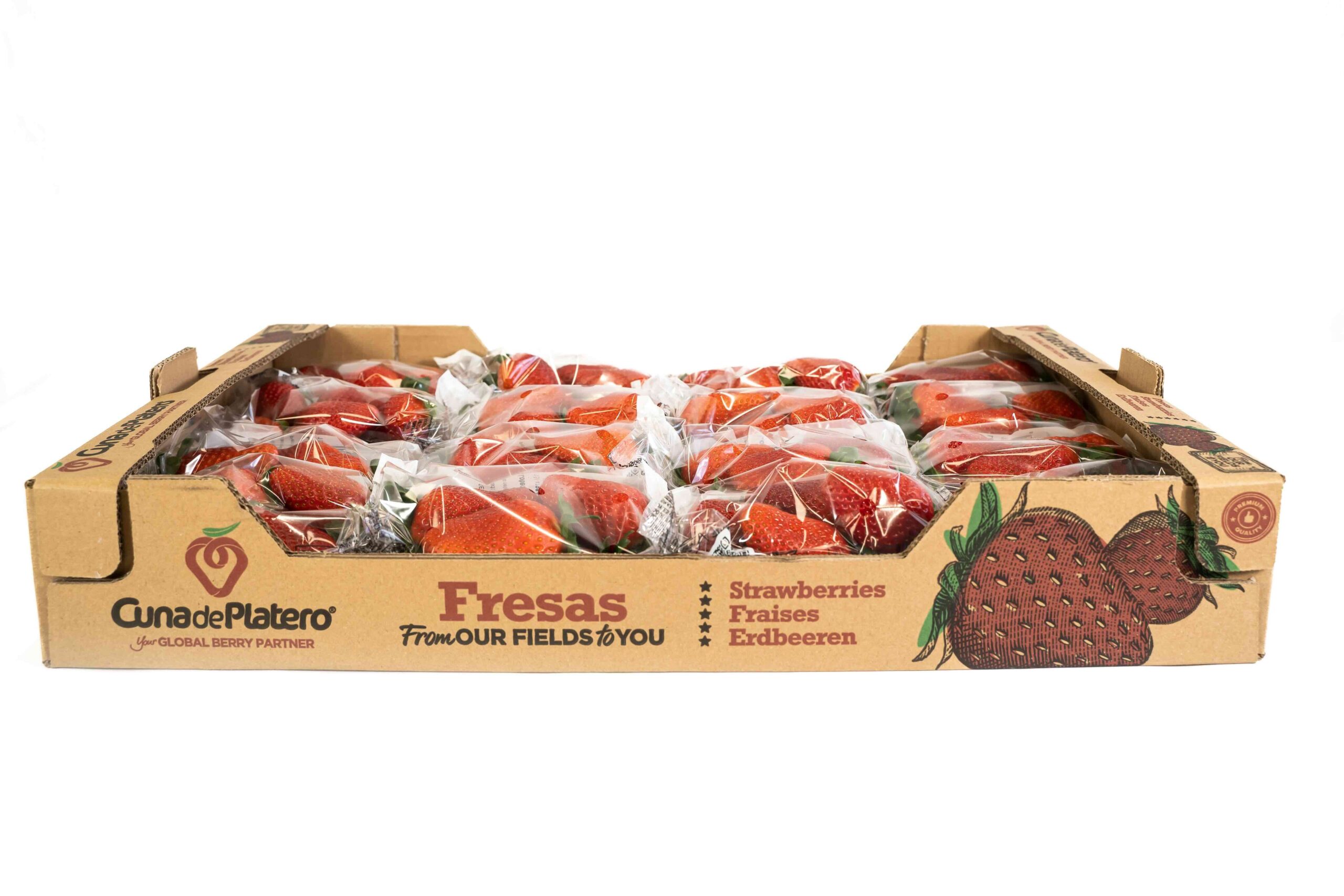 Las fresas son el cultivo estrella de Cuna de Platero. Contamos con unas 600 hectáreas de superficie y 46.000 tn de producción. Es una fruta roja o anaranjada, según la variedad, que destaca por su aroma y sabor. Siendo fieles a nuestro eslogan: “Your global berry partner”, en Cuna de Platero ofrecemos a nuestros clientes y al consumidor final fresas durante todo el año.