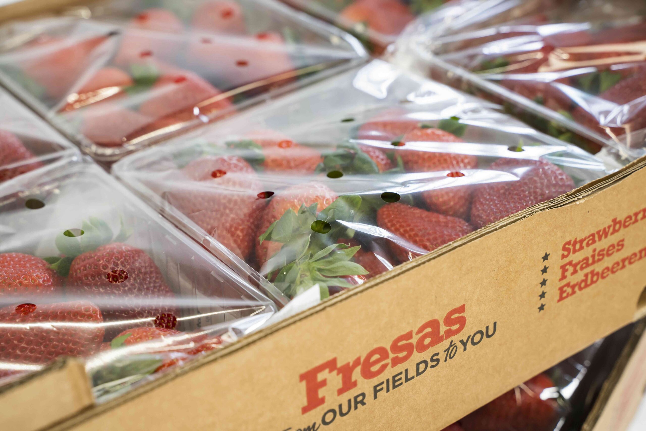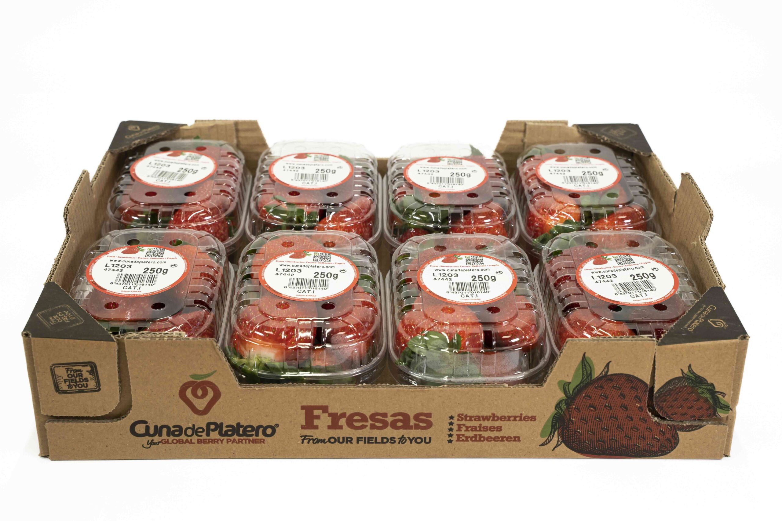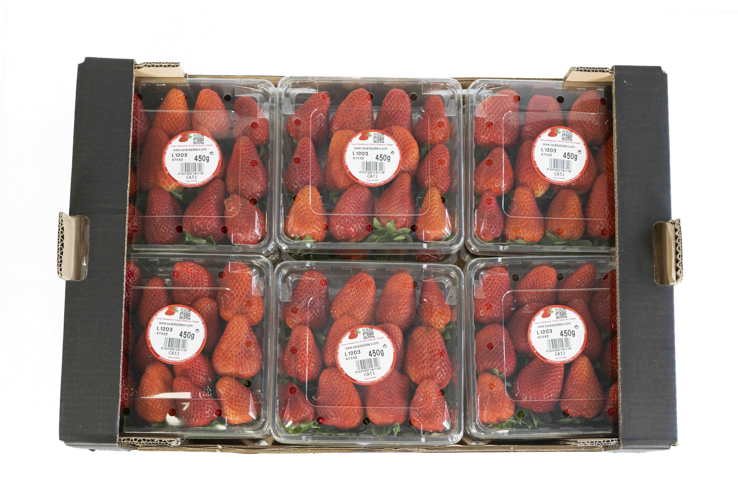 Las fresas son el cultivo estrella de Cuna de Platero. Contamos con unas 600 hectáreas de superficie y 46.000 tn de producción. Es una fruta roja o anaranjada, según la variedad, que destaca por su aroma y sabor. Siendo fieles a nuestro eslogan: “Your global berry partner”, en Cuna de Platero ofrecemos a nuestros clientes y al consumidor final fresas durante todo el año.