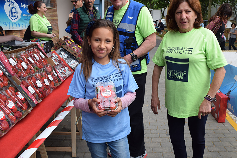 Esta carrera solidaria, que cumple su quinta edición, es organizada por la Fundación Atlantic Copper. Los niños debían entregar, como cuota de inscripción, tres kilos de alimentos no perecederos. “Fomentamos así, además de la actividad física desde edades tempranas, la solidaridad y ayuda al que menos tiene”. En total, la actividad solidaria ha logrado recaudar 1.600 kilos de alimentos.