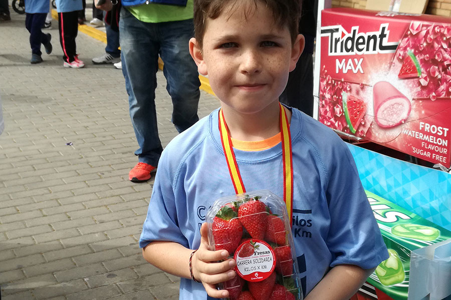 Las fresas de Cuna de Platero, para el disfrute de los niños que participan en la carrera solidaria “Kilos x Km”