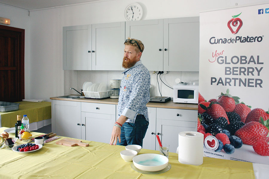 Bajo los fogones del cocinero y comunicador onubense Daniel del Toro, las frambuesas y arándanos de Cuna de Platero protagonizaron algunos de los platos de la demostración culinaria “Comunicación para cocinar mejor y consumir local”. Durante dos días, este curso pretendía que los asistentes debatieran sobre cómo llegar a tener una alimentación que, además de disfrutarla, sea saludable y garantice la sostenibilidad del planeta.